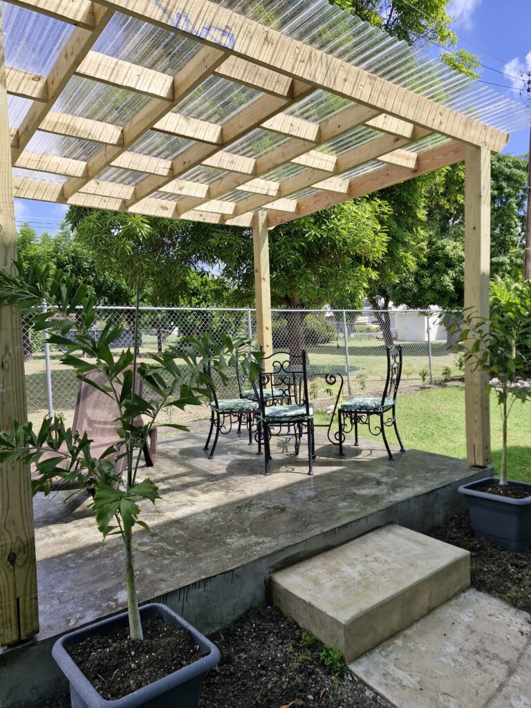 For the exclusive use of the upstairs loft, there is a gazebo covered with SPF rated plastic. Continue to enjoy the warmth of the sun, without the exposure. Shade is beautiful in the afternoon on this side of the building.
