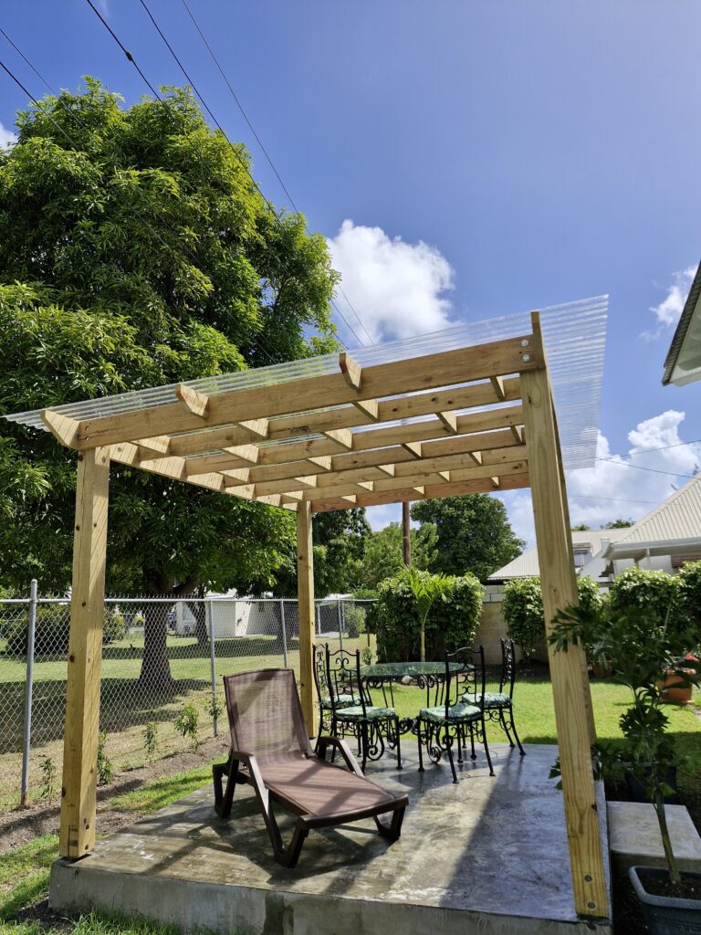 Enjoy a coffee under the shaded lean-to, just outside your kitchen window. Filtered sunshine is beautiful here in the morning, and provides good shade in the afternoon.
